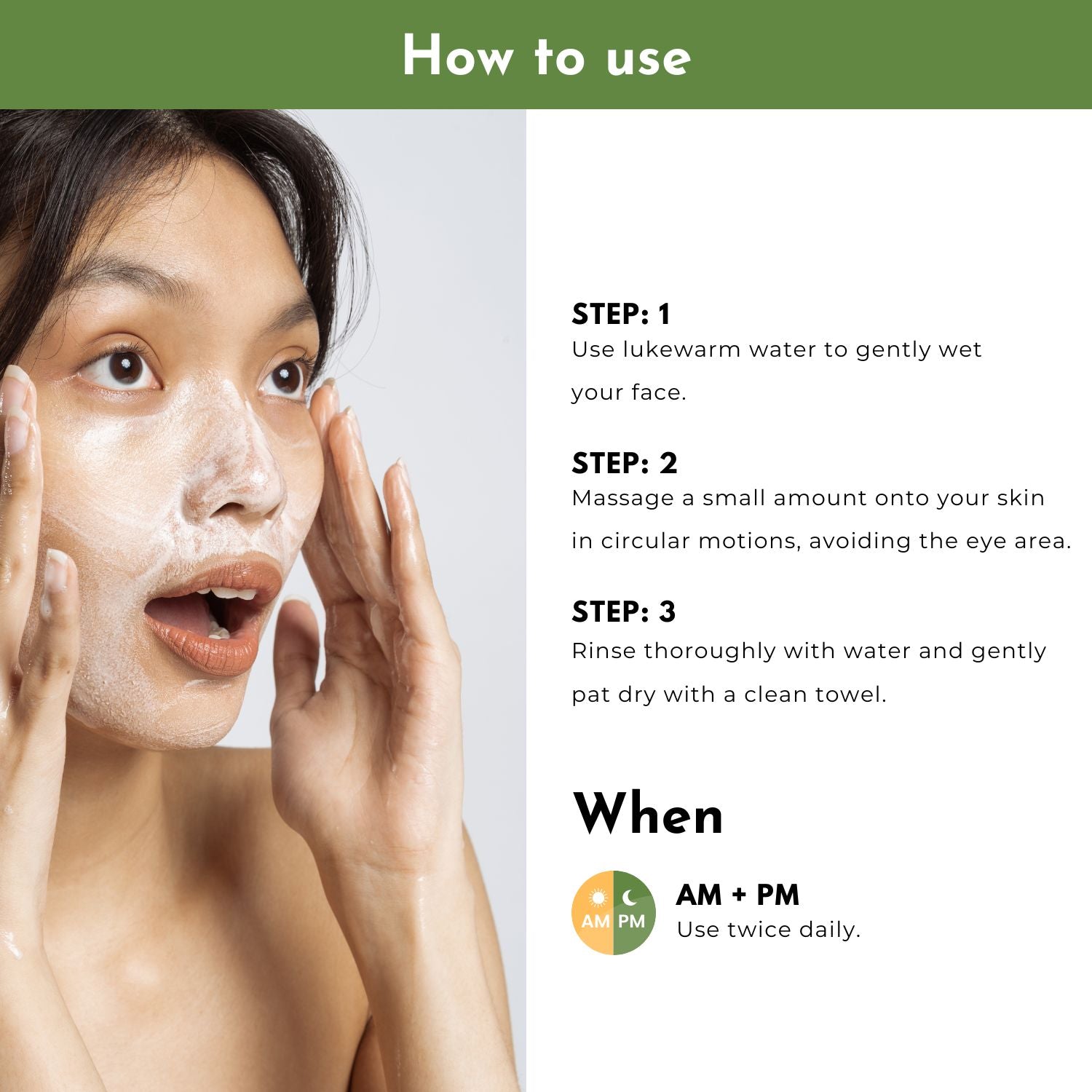 How It Works: Wet your face, apply a small amount of face wash, massage in circular motions, rinse thoroughly, pat dry, follow with skincare routine.