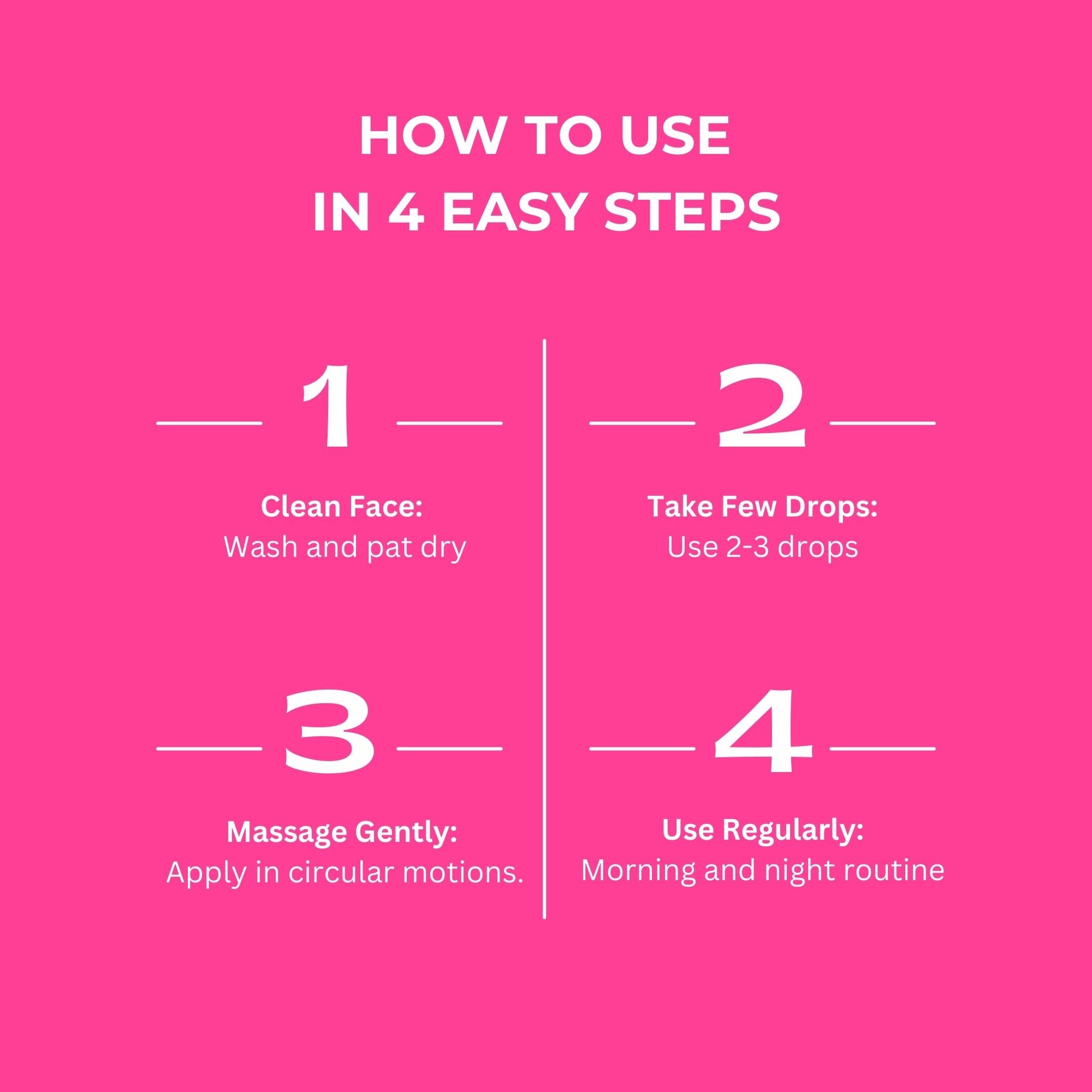 How it works: After cleansing and applying other skincare, dispense a few drops of face oil onto fingertips. Gently press and massage onto face and neck. Allow absorption for nourished, radiant skin.