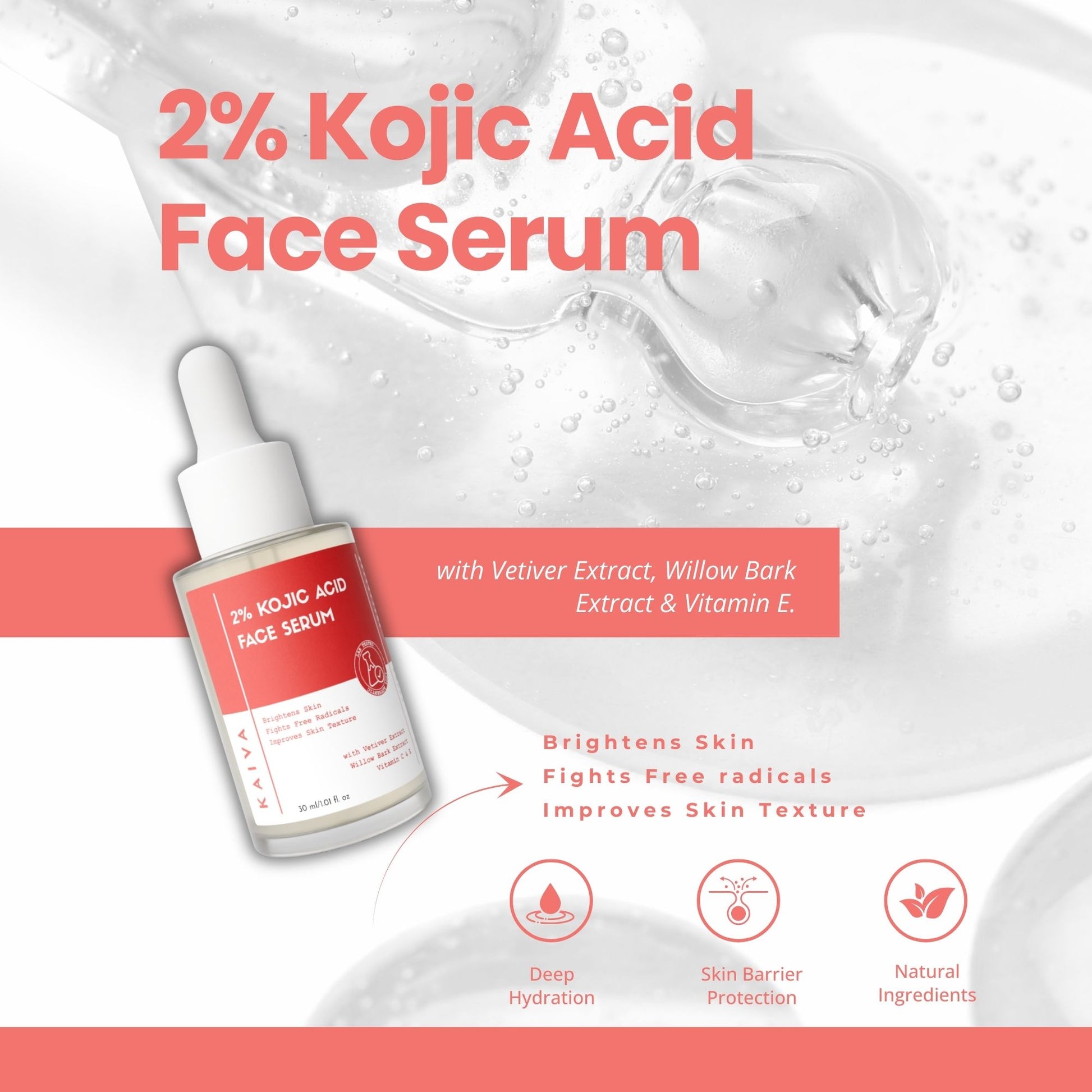 2% Kojic Acid Face Serum helps reduce dark spots, hyperpigmentation, and uneven skin tone for a brighter, more radiant complexion. Its powerful formula gently fades blemishes while improving skin texture. Enriched with hydrating ingredients, it promotes a smooth, even glow. Suitable for all skin types for daily use.