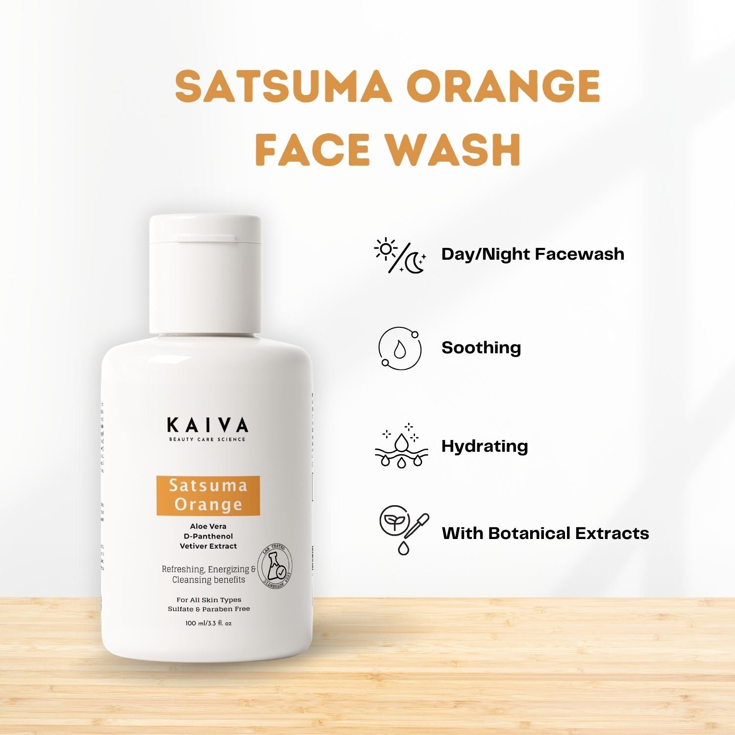 KAIVA's Satsuma Orange Face Wash is a facial cleanser that contains Satsuma Orange extracts, which are rich in Vitamin C and antioxidants. This face wash can help to gently cleanse the skin while providing a range of benefits. The Satsuma Orange extracts in this face wash can help to brighten and even out skin tone, promote collagen production, and protect the skin against environmental stressors. Additionally, the refreshing citrus fragrance of this face wash can provide an invigorating and uplifting experience.