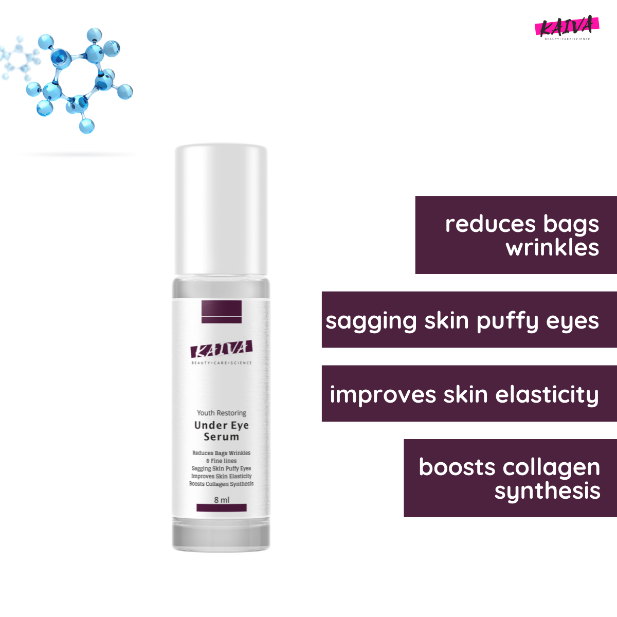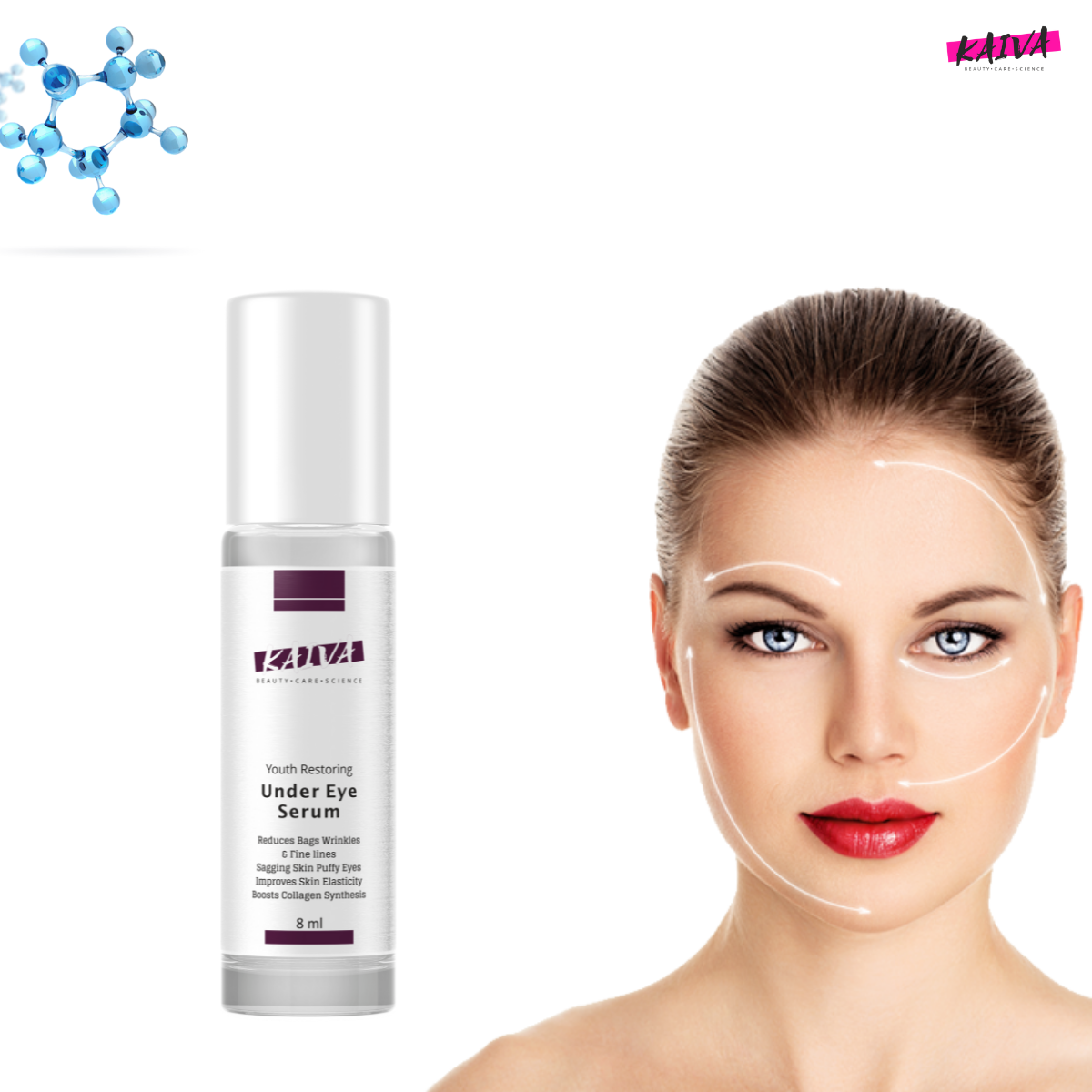 KAIVA Under Eye Serum for Dark Circles, Puffiness, Wrinkles & Radiant Skin - 8ML